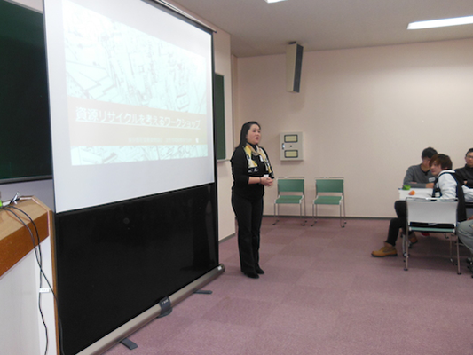 グループに分けたディスカッション その後、グループに分かれ、別室にて『廃棄物業界に対するイメージ』『将来の廃棄物処理業界のあり方』というテーマでグループディスカッションに入り、各グループの代表者がその結果について発表を行いました。業界というより、廃棄物のイメージは、やはり暗い、汚い、臭いというマイナスイメージを持っている学生さんがほとんどでしたが、「女性部の皆さんのお話を伺い、ゴミをゴミと思わず商品と思っていかないと明るい地球はない…。」などの意見も多数上がりました。