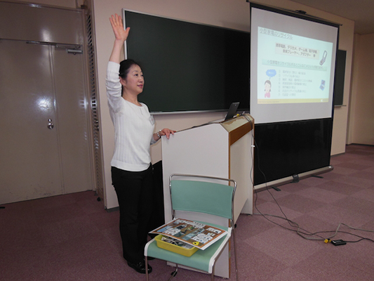 中山人間学部准教授ゼミの学生さん達と共に 第1部は『廃棄物処理業界で働く女性』というテーマで、野村副部長(株式会社 東京クリアセンター)が講演を行いました。「昔一人で会社にて留守番をしていた時に、お客様より、まだ廃棄物の回収に来ていないが、と催促の電話連絡をうけ、自分は運転免許が無かった為に徒歩で駆けつけた。」というようなエピソードを織り交ぜながらお話をされ、最後に「中途入社で経理として入社したはずが、収集運搬と営業以外は全て経験させて頂いた。全てを経験させてくれた上司、会社があってこそ今の自分がいる。廃棄物をやっていてよかったと思える会社にしていかなければと思っている。」と語り、講演を閉めました。