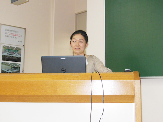 学生さんの活動状況発表風景 4つめは『ウミガメとの出会い』という内容で、実際に屋久島にウミガメの産卵を見に行ったグループからの報告でした。屋久島では絶滅危惧種のウミガメの産卵が行われているのですが、人が捨てたごみや釣り針などが砂浜に上がり、産卵に来る亀の数が減ってきているそうです。最後のグループの報告は、同じ屋久島の廃棄物の現状についてでした。屋久島には現在も廃プラスチック類の廃棄物が野積されているそうです。廃棄物は宮崎県に運び処理をしたそうですが、3万円/tの運搬費がかかり7,000tは処理されましたが、あまりに高額な為、経済上中止されたそうです。